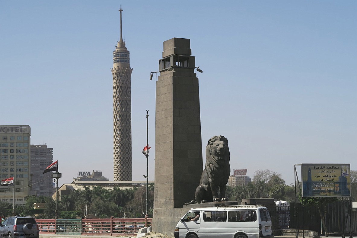 10 In the background is the Cairo Tower, supposedly one of Egypts most well known landmarks. The lion is the entrance to another bridge across the Nile.
