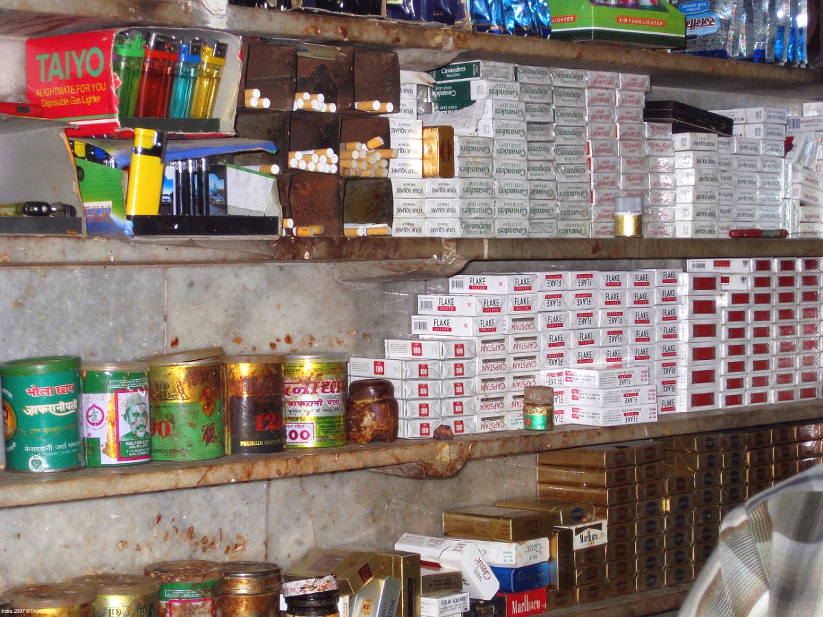 6 This small stand also sells cigarettes which can be purchased individually or in packages. Many patrons will buy a paan (betel nut) and one or two cigarettes.
