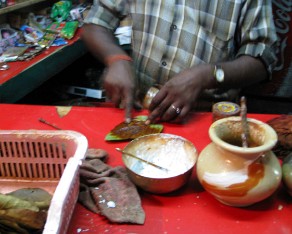 5 Small stands sell "Paan" which is betel leaf sometimes inaccurately called the "betel nut". Different ingredients are added to the paan according to taste.