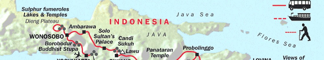 We actually started our trip with three days in Jakarta (not seen on this map), then flew to Yogyakarta to start the trip you see here. Total time spent on this leg of the trip was 18 days and then it was off to Maylasia. We hope you enjoy the album as much as we enjoyed this leg of the trip.