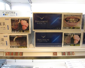 6 In the duty free shop its interesting to see that cartons of cigarettes all have very disgusting pictures of the side effects of tobacco on the cartons.