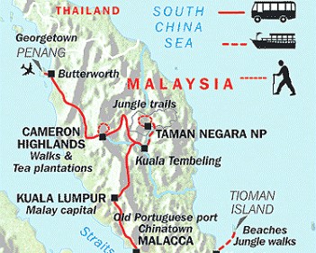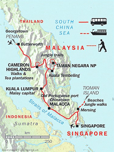We have just finished the first half of our trip in Indonesia (see Indonesia 2010 album). This second half of our trip begins in Penang, Malaysia, near the Thailand Malaysia border. We will head into the Cameron highlands, then to Taman Negara NP, then south to Kuala Lumpur and Malacca. We end Malaysia with a stay on Tioman Island before crossing the straits for a few last few days in Singapore.