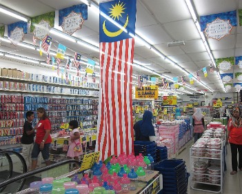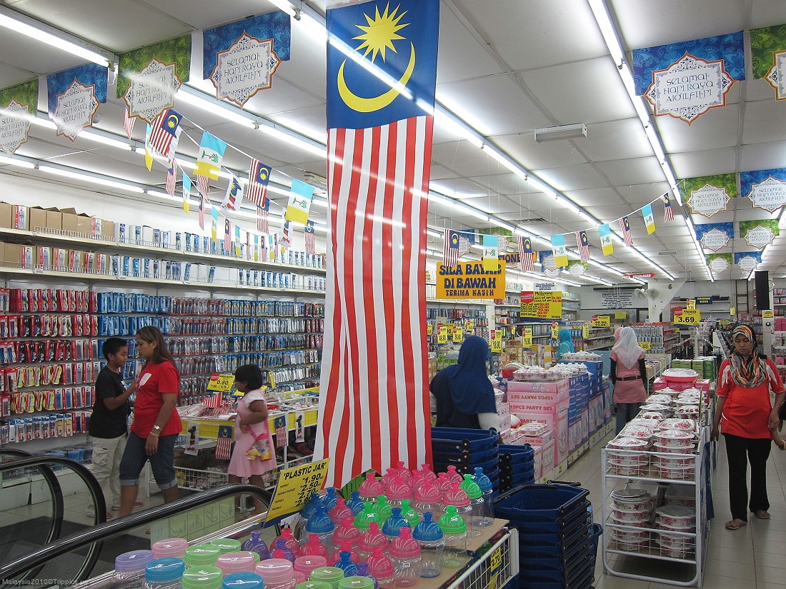 9 After a big bowl of delicious soup we continue to explore the town and find this local store. The Malaysian flag hangs from the ceiling, it is almost Independence day here and flags decorate everything.