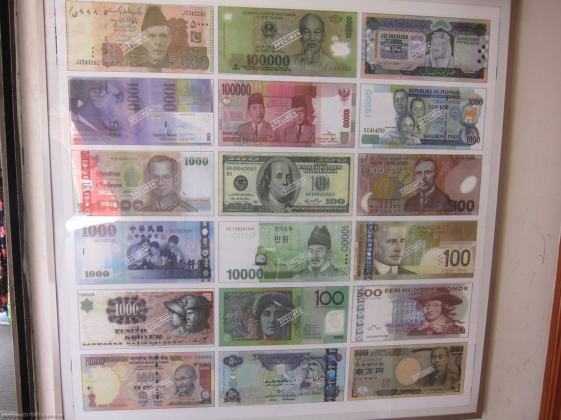 10 This poster indicates the various currencies the money exchanger will deal with. Money exhangers are found everywhere on the streets so you have to look for the best rates.