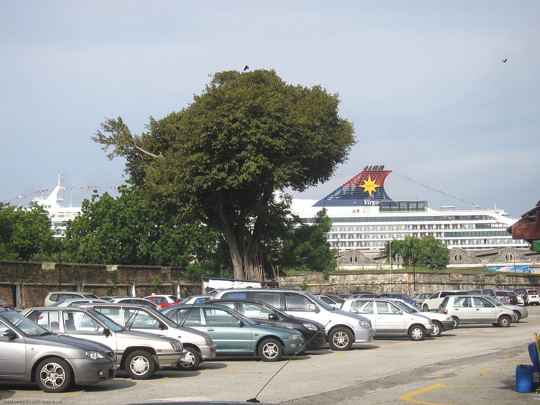 16 When the English captain Francis Light landed here in 1786 folklore says he fired gold coins into the surrounding jungle to induce his men to clear the area. The port established here by the British is still in use and a cruise ship that is docked in the Straight of Malacca can be seen in the distance.