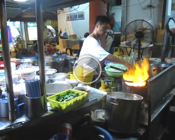 7 PLEASE WAIT, MOVIE LOADING. It is evening again on our second day and we have been exploring the town. We see this very popular street stall and stand in line with everyone to find out what is offered there. The cook is using high intensity flame to make bowls of boiling hot soup to order with a variety of ingredients chosen by the customer.