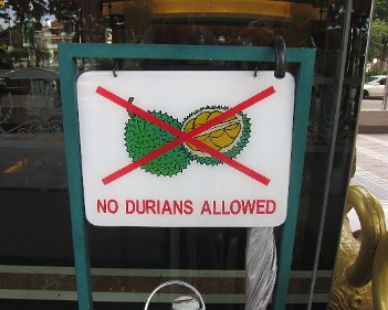 11 Durian fruit is very popular in Malaysia, but as it is extremely stinky you often see signs near malls, hotels and subways banning them from the premisis. Durian smells like stinky socks, the worst you can imagine, but if you can get past the smell, the custardy fruit inside is supposed to taste like vanilla pudding.