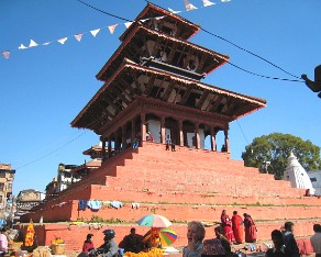 19 This is the temple where the current Kumari lives. The Kumari is a living goddess that is brought to the temple as a young child after a lengthy selection process. We were lucky enough to catch a glimpse of her as she made herself visible to the crowd below. We were unable to get her in this picture.
