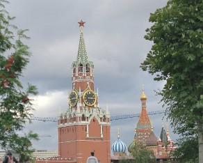 13 Red Square with Kremlin on right, St. Basil's ahead, and GUM department store on the left.