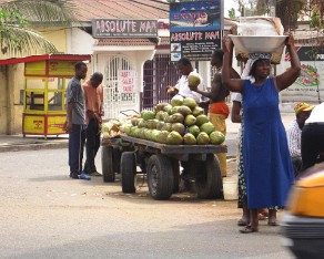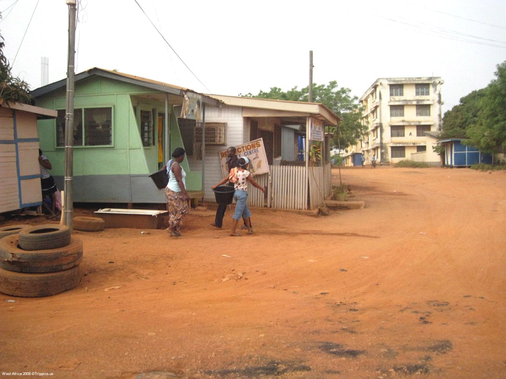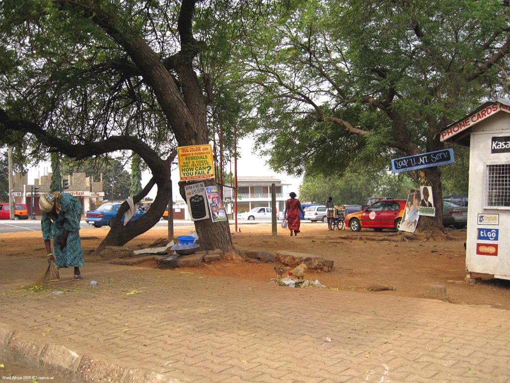 5 This is a typical street scene in Accra and the large trees help shade from the heat of over 90 F with high humidity.
