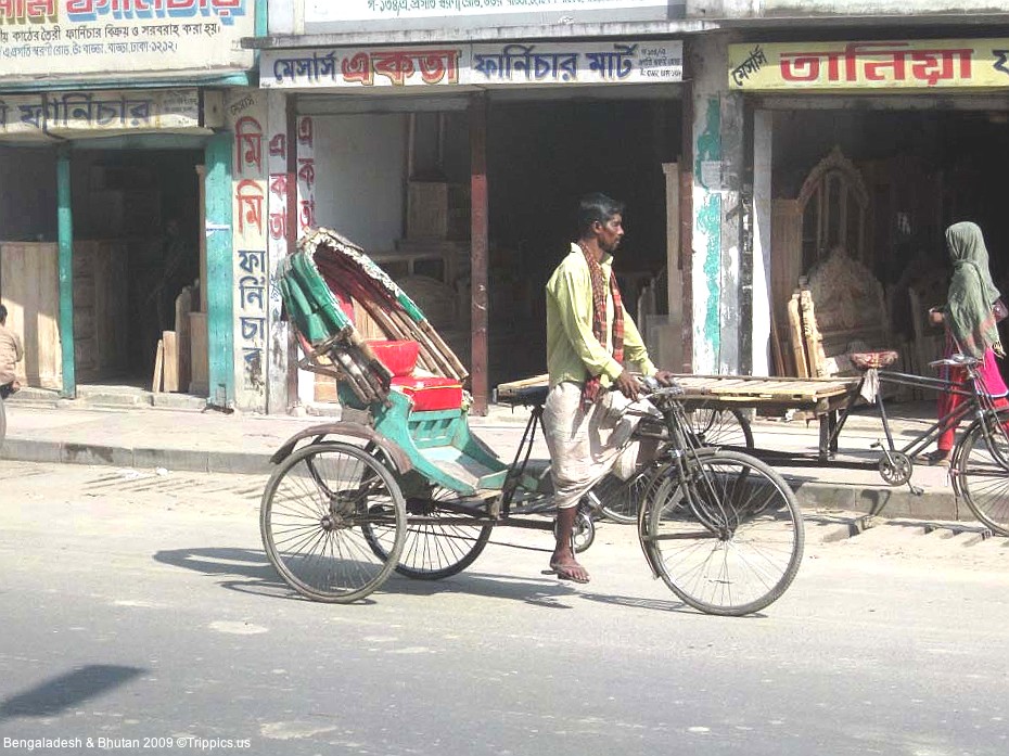 5 First day out on the town (Dhaka) and we do a lot of walking and make use of these rickshaws. They are cheap and plentiful and offer the local people a way to make a living.