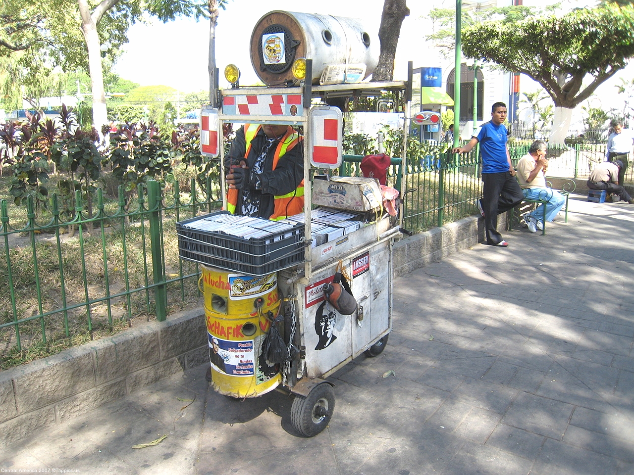 15 In the park there is much to see including this barbecue in a shopping cart. Not so unusual in San Salvador.