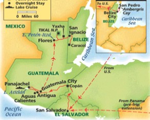 This trip covers El Salvador, Honduras, Guatemala and Belize - ENJOY.