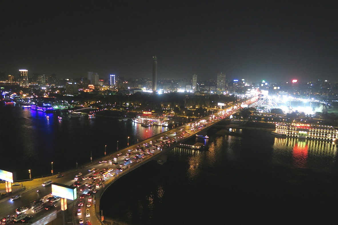 3 Cairo is a 24 hour city with plenty of traffic. The view from our room is magnificent. Party boats on the Nile and one of the numerous bridges over the river.