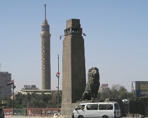 10 In the background is the Cairo Tower, supposedly one of Egypts most well known landmarks. The lion is the entrance to another bridge across the Nile.