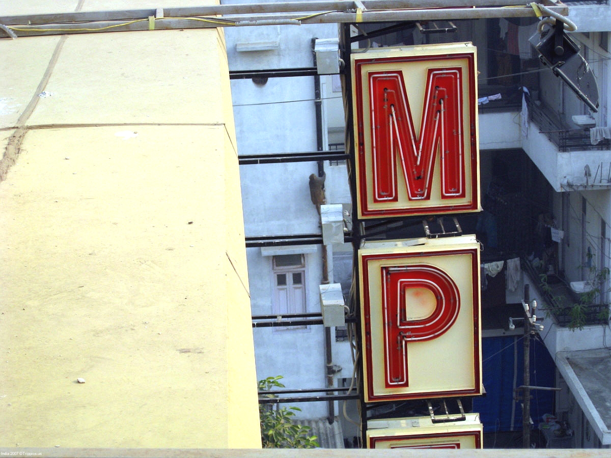 9 Monkeys abound in Delhi. This one is climbing down a drain pipe (left of the M) after stealing food from people on a porch.