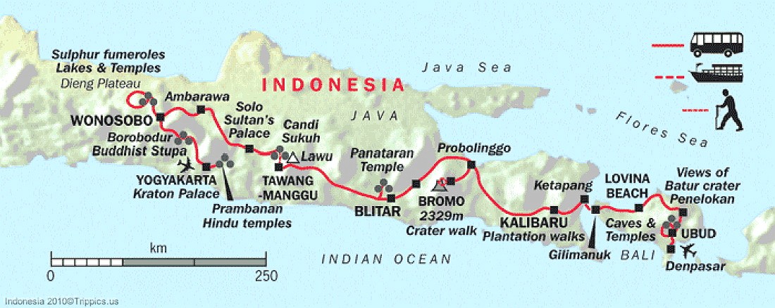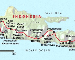 We actually started our trip with three days in Jakarta (not seen on this map), then flew to Yogyakarta to start the trip you see here. Total time spent on this leg of the trip was 18 days and then it was off to Maylasia. We hope you enjoy the album as much as we enjoyed this leg of the trip.