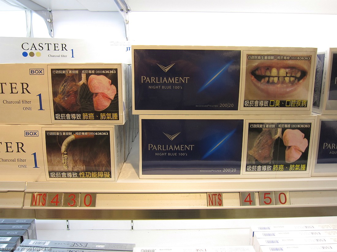 6 In the duty free shop its interesting to see that cartons of cigarettes all have very disgusting pictures of the side effects of tobacco on the cartons.