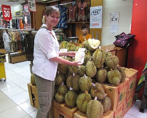 10 We are in the tropics so we will surely find durian fruit, which is foul smelling. Some consider it inedible and it is banned from most establishments.