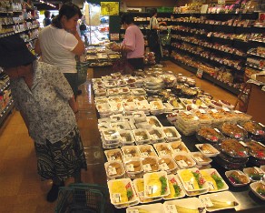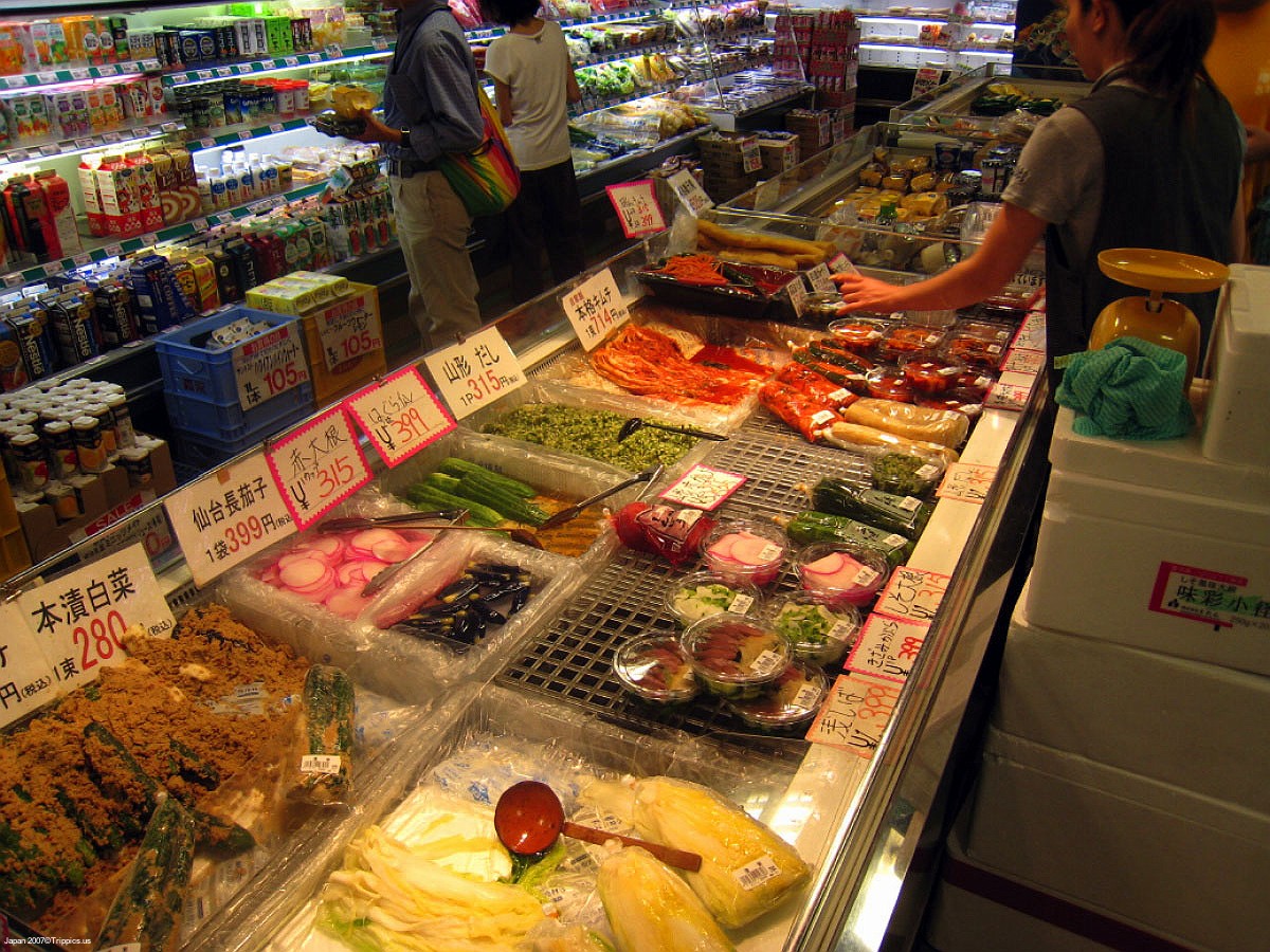 13 I bought sushi for dinner, bananas, eggs, lunch meat, bread and of course beer. If you can stop by a store every few days you can save money.