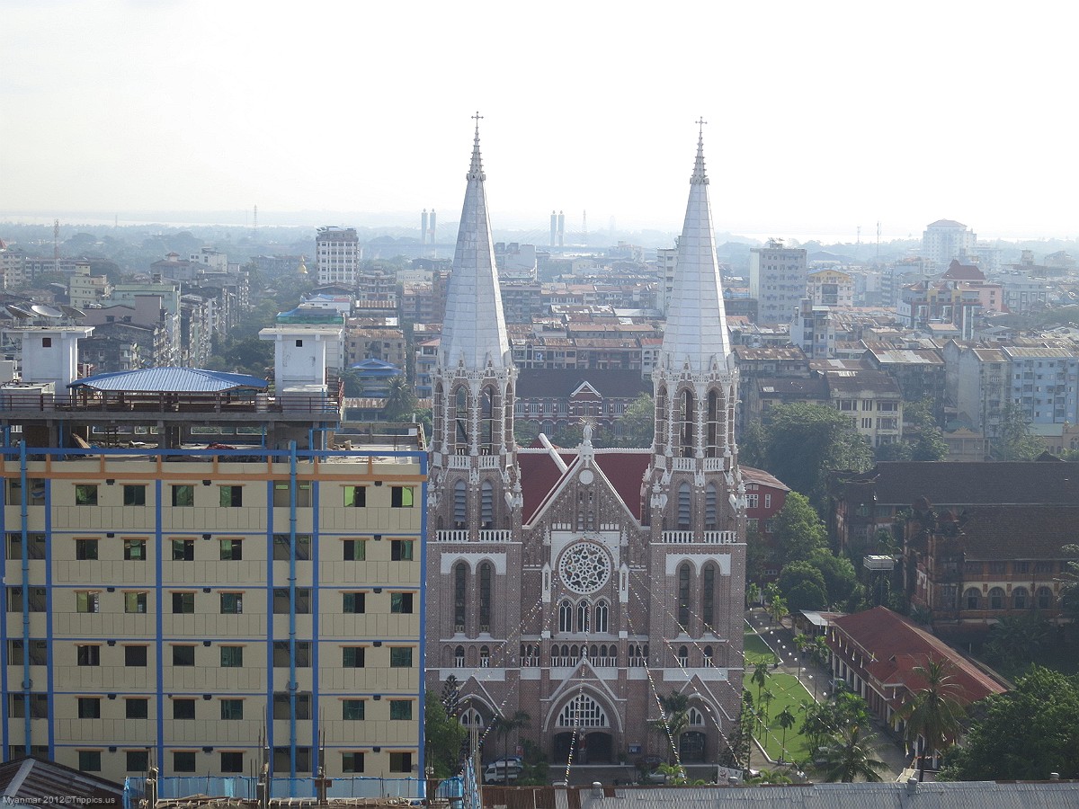 6 We also see a beautiful Christian church from the rooftop. This city contains Christian churches, Muslim mosques, and other places of worship. However, by far most of the population is Buddhist and in our stay in Myanmar I have never seen more stupas and pagodas in all my travels in S. E. Asia.