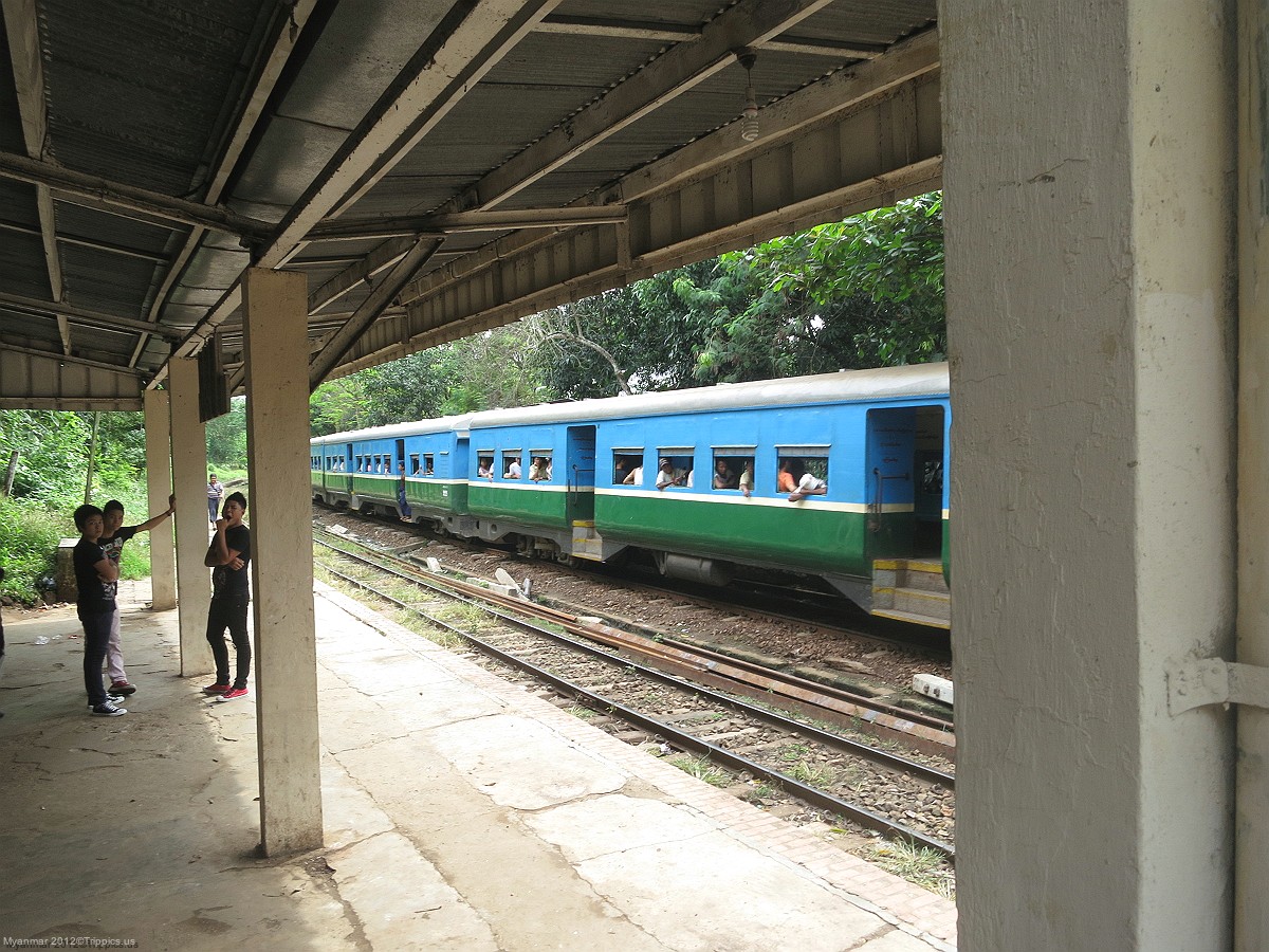 8 During our walk around town we go below an overpass in order to get a closer look at the Myanmar trains.