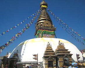 8 The temple at Swayambhunath is lovely with prayer flags. Although the site is considered Buddhist, the place is revered by both Buddhists and Hindus. Numerous Hindu kings are known to have paid their homage to the temple including the most powerful king of Kantipur- Pratap Malla.