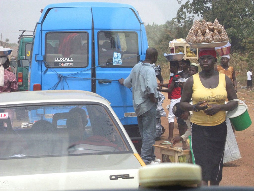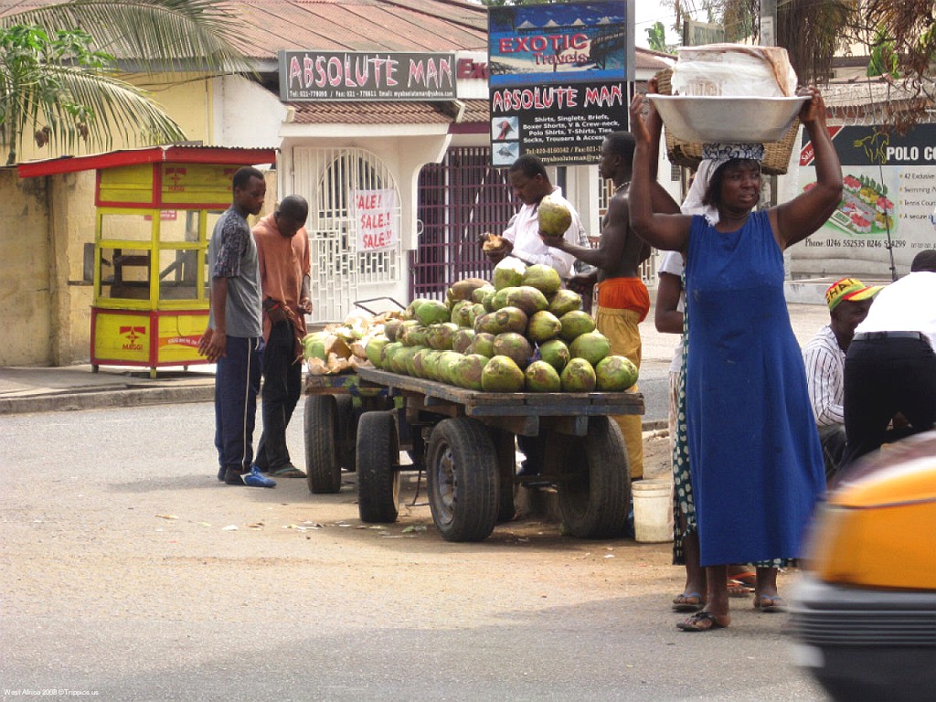 5 This is a typical street scene in Accra and the large trees help shade from the heat of over 90 F with high humidity.